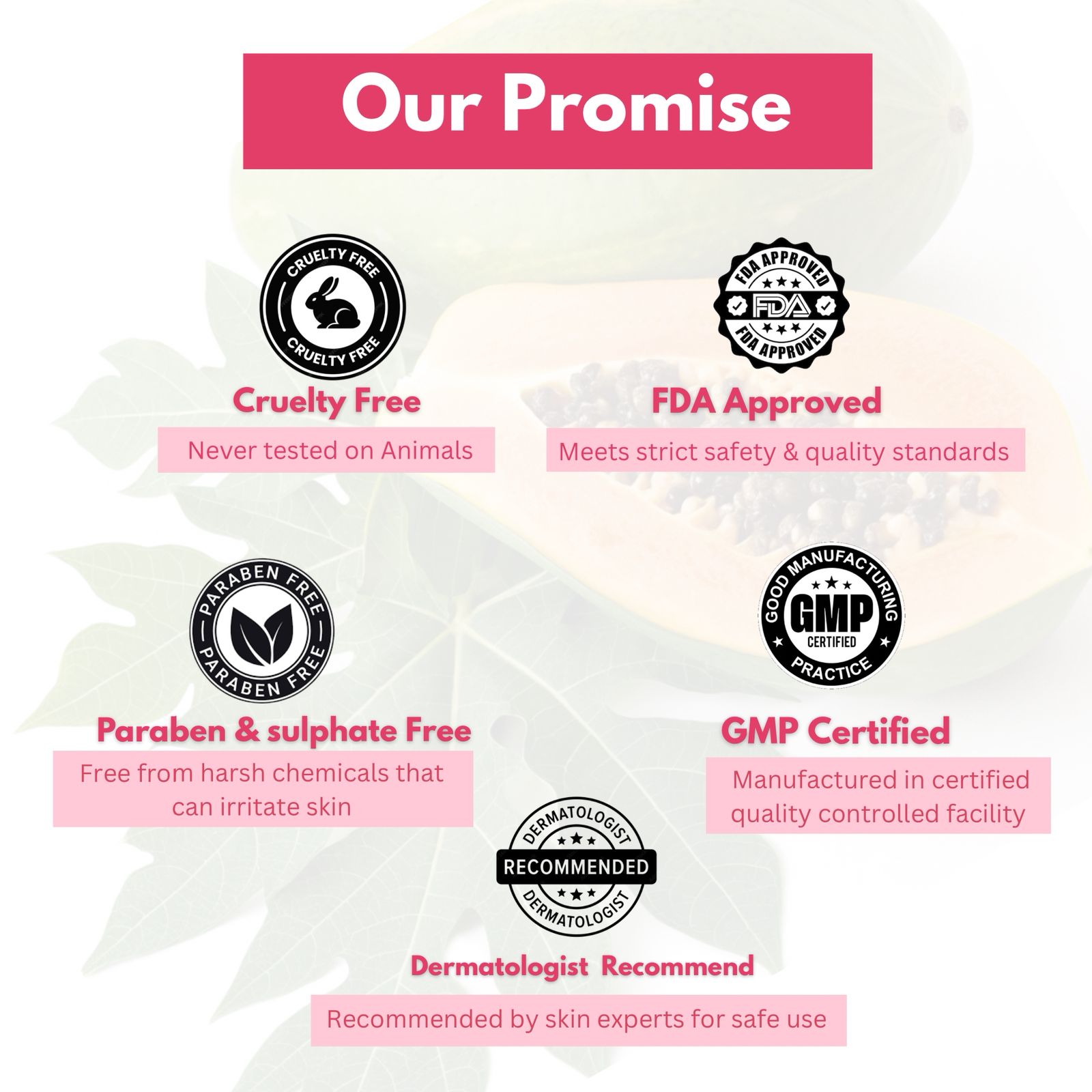 • Infused with Skin-Loving Ingredients – Papaya, Niacinamide, Vitamin E, Green Tea